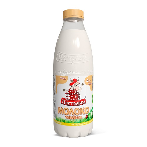 БЗМЖ МОЛОКО ПЕСТРАВКА ТОПЛЕНОЕ 4% 0,93Л ПЭТ