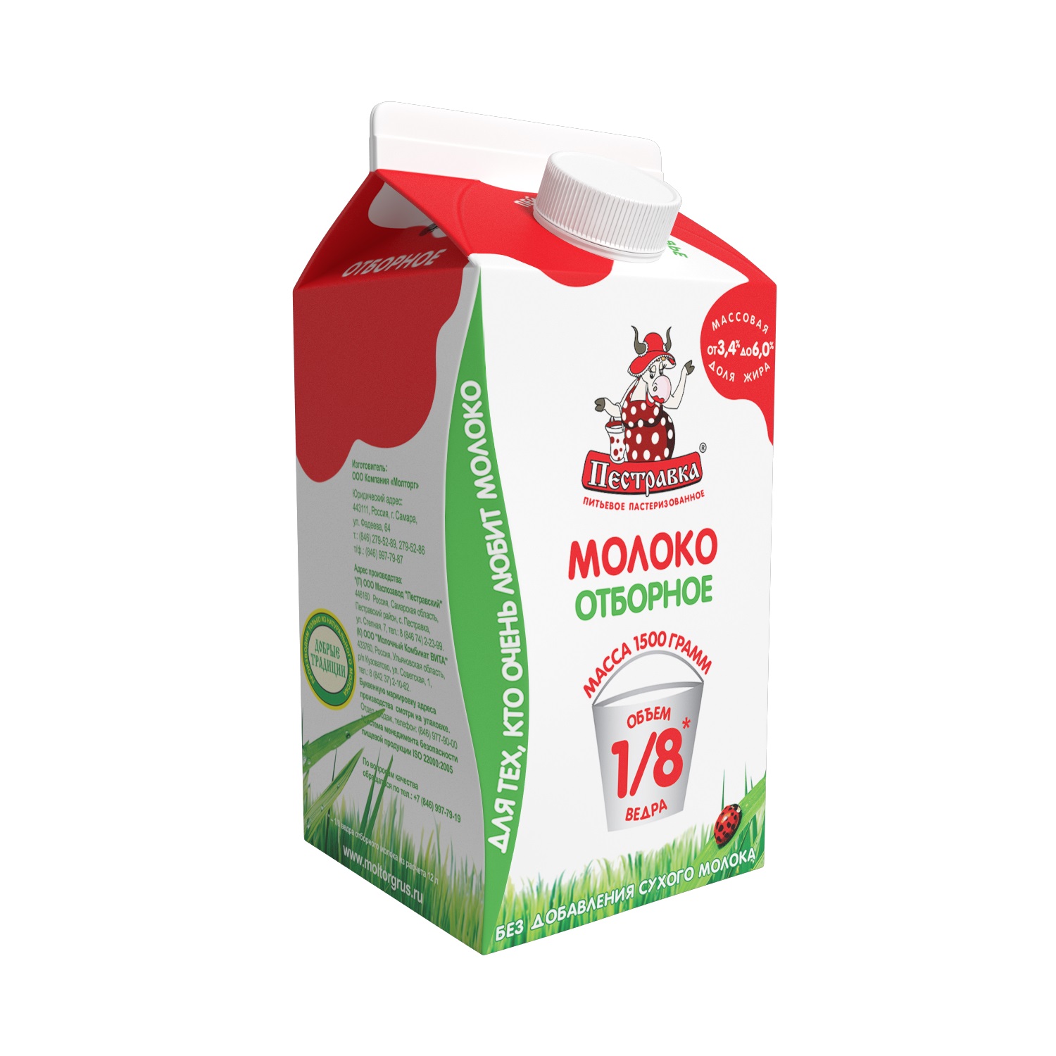 Отборное молоко - чем оно отличается от обычного? Отборное молоко - это молоко высшего качества, максимально приближенное к естественному, поэтому оно имеет естественный процент жирности. Отборное молоко широко используется для детского питания и незаменимо для тех, кто следит за своим здоровьем и стремится употреблять только натуральные продукты. Отборное молоко от "Пестравки" производится в экологичной объемом полтора литра, специально для тех, кто очень любит молоко!