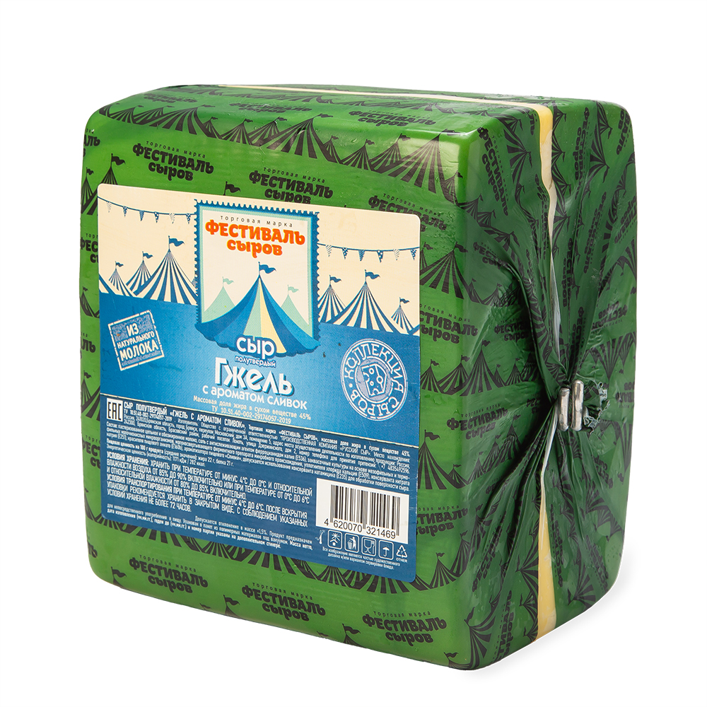 БЗМЖ СЫР ГЖЕЛЬ 45% ФЕСТИВАЛЬ СЫРОВ С АРОМАТОМ СЛИВОК КВАДРАТ /ВЕС