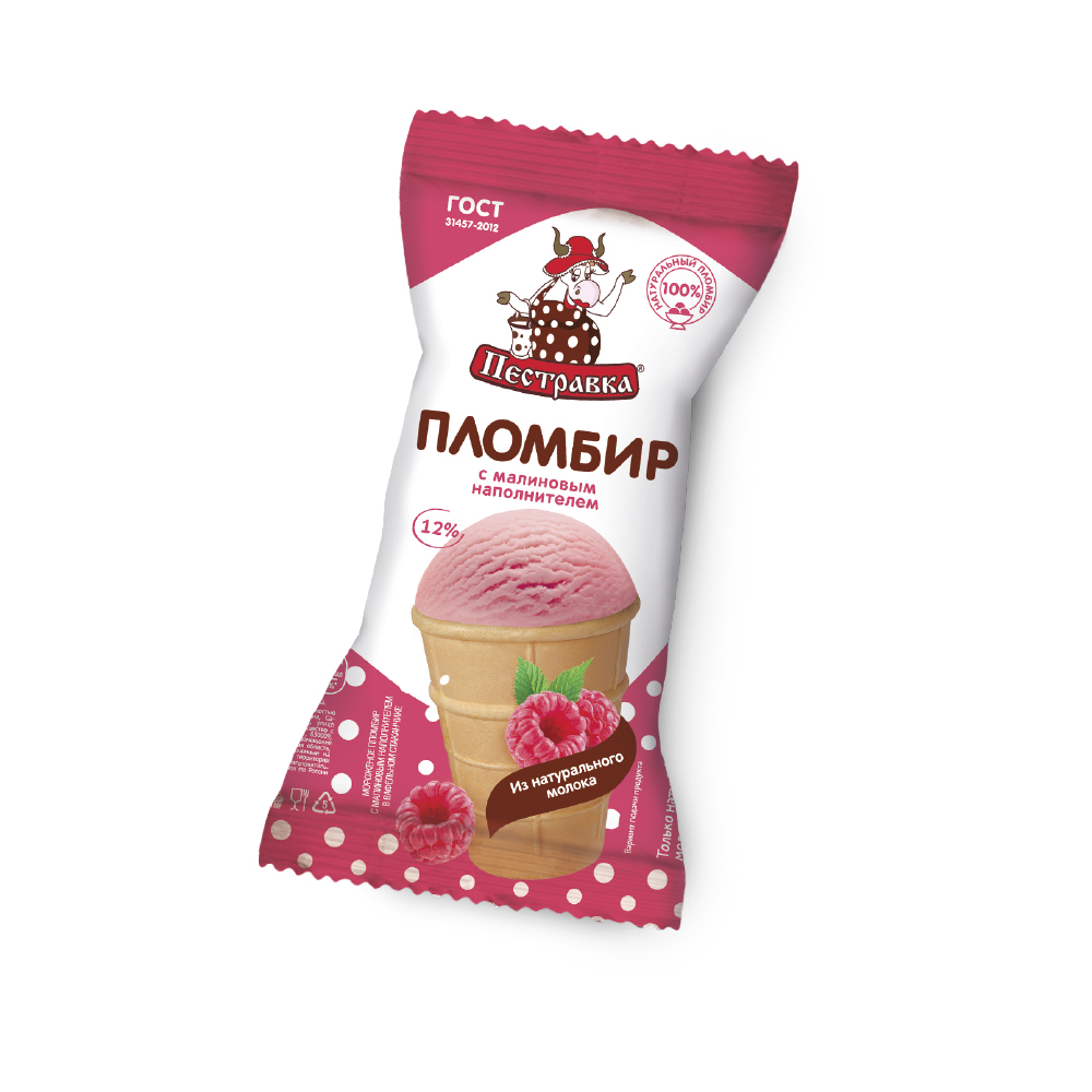 БЗМЖ МОРОЖЕНОЕ ПЕСТРАВКА ВАФ СТАКАН ПЛ С МАЛИНОЙ 12% 100ГР
