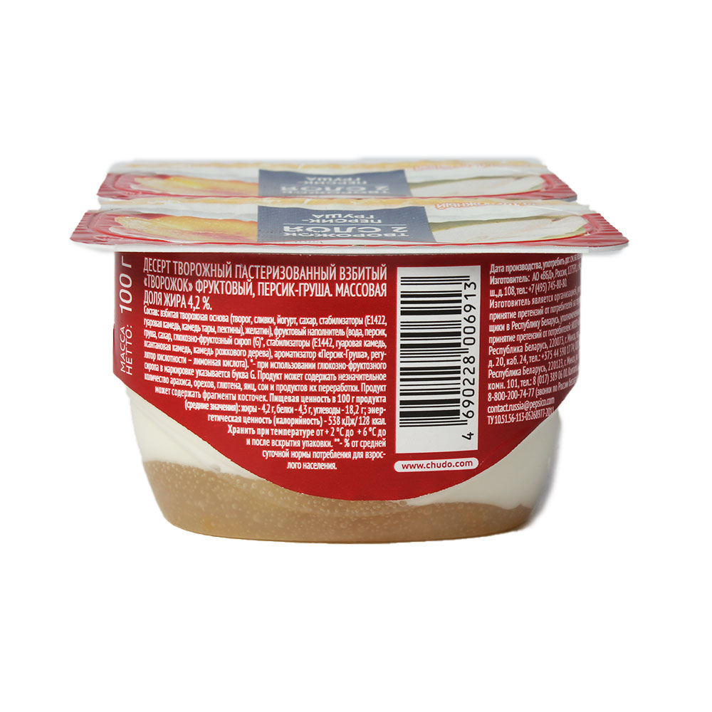 БЗМЖ ТВОРОЖОК ЧУДО ПЕРСИК-ГРУША 4,2% 100ГР
