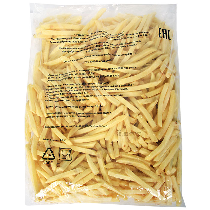 КАРТОФЕЛЬ ФРИ 9Х9ММ ТРИУМФ 2,5КГ (5ШТ/КОР)