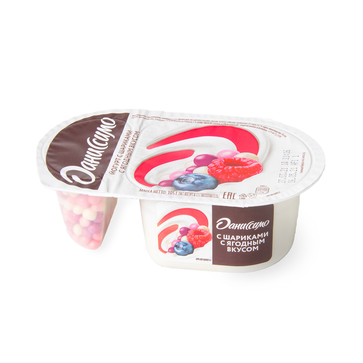 БЗМЖ ЙОГУРТ ДАНИССИМО ФАНТАЗИЯ 6,9% ЯГОДНЫЕ ШАРИКИ 105ГР