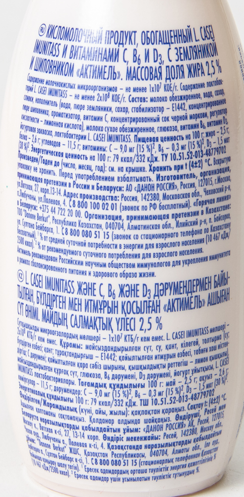 Кисломолочный продукт, обогащенный L. CASEI IMUNITASS и витаминами В6 и D3, с земляникой и шиповником