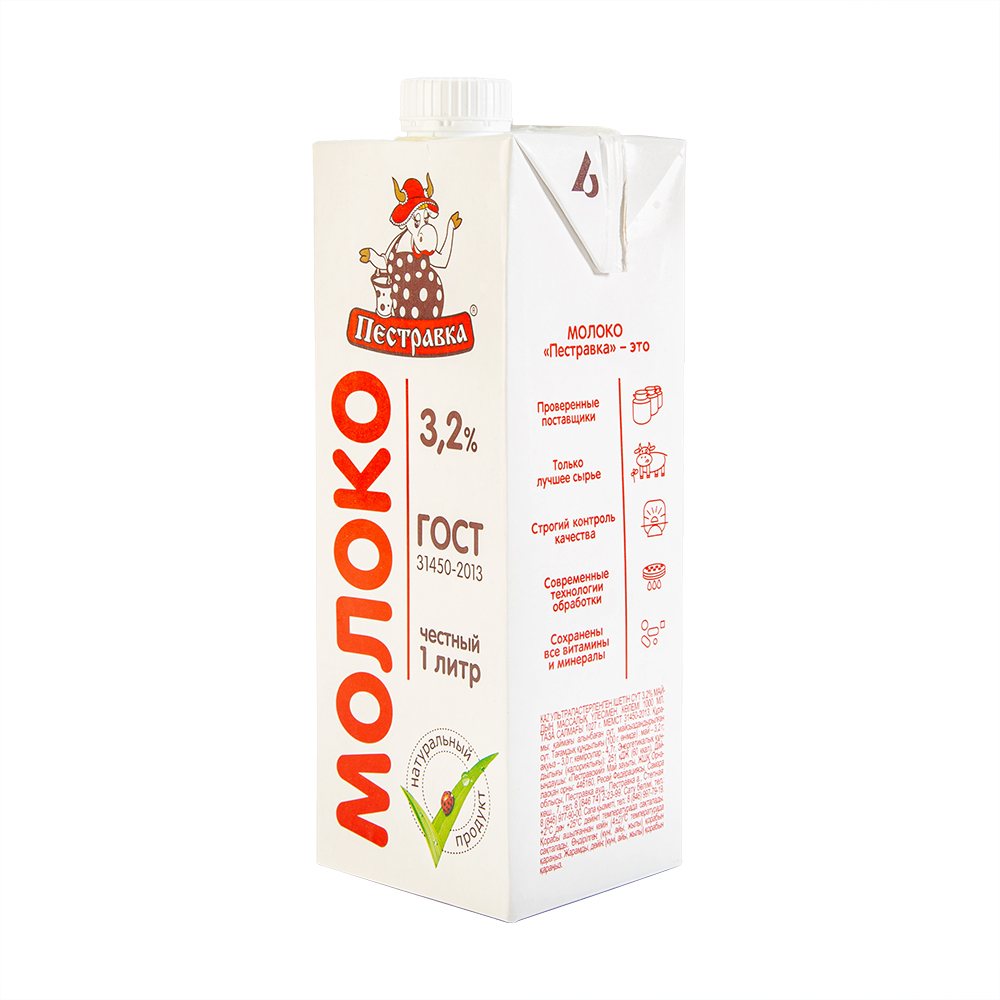 БЗМЖ МОЛОКО ПЕСТРАВКА 3,2% 1000МЛ ТБА