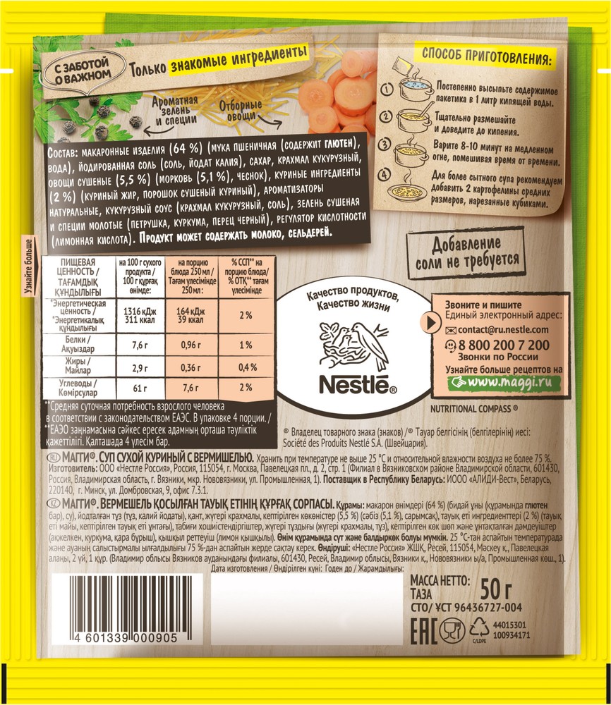 СУП МАГГИ КУРИНЫЙ С ВЕРМИШЕЛЬЮ 50ГР