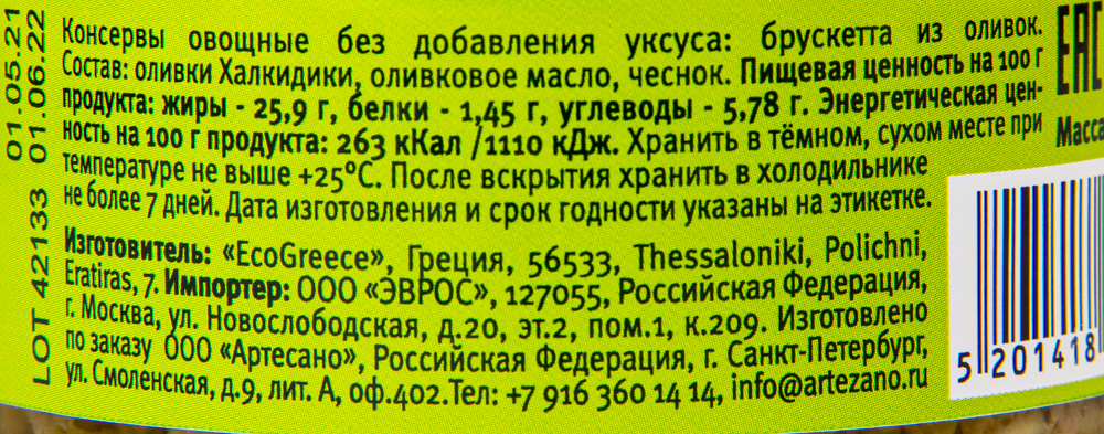 БРУСКЕТТА ИЗ ОЛИВОК ХАЛКИДИКИ С ДОБАВКАМИ СТ/Б 150ГР