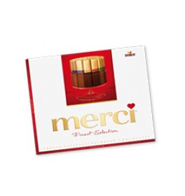 "Великолепное ассорти из уникальной коллекции изысканного шоколада, для производства которого используются ингредиенты высокого качества. Бренд MERCI сразу нашел путь к сердцам людей, став первым шоколадом, с помощью которого можно выразить искреннюю благодарность.