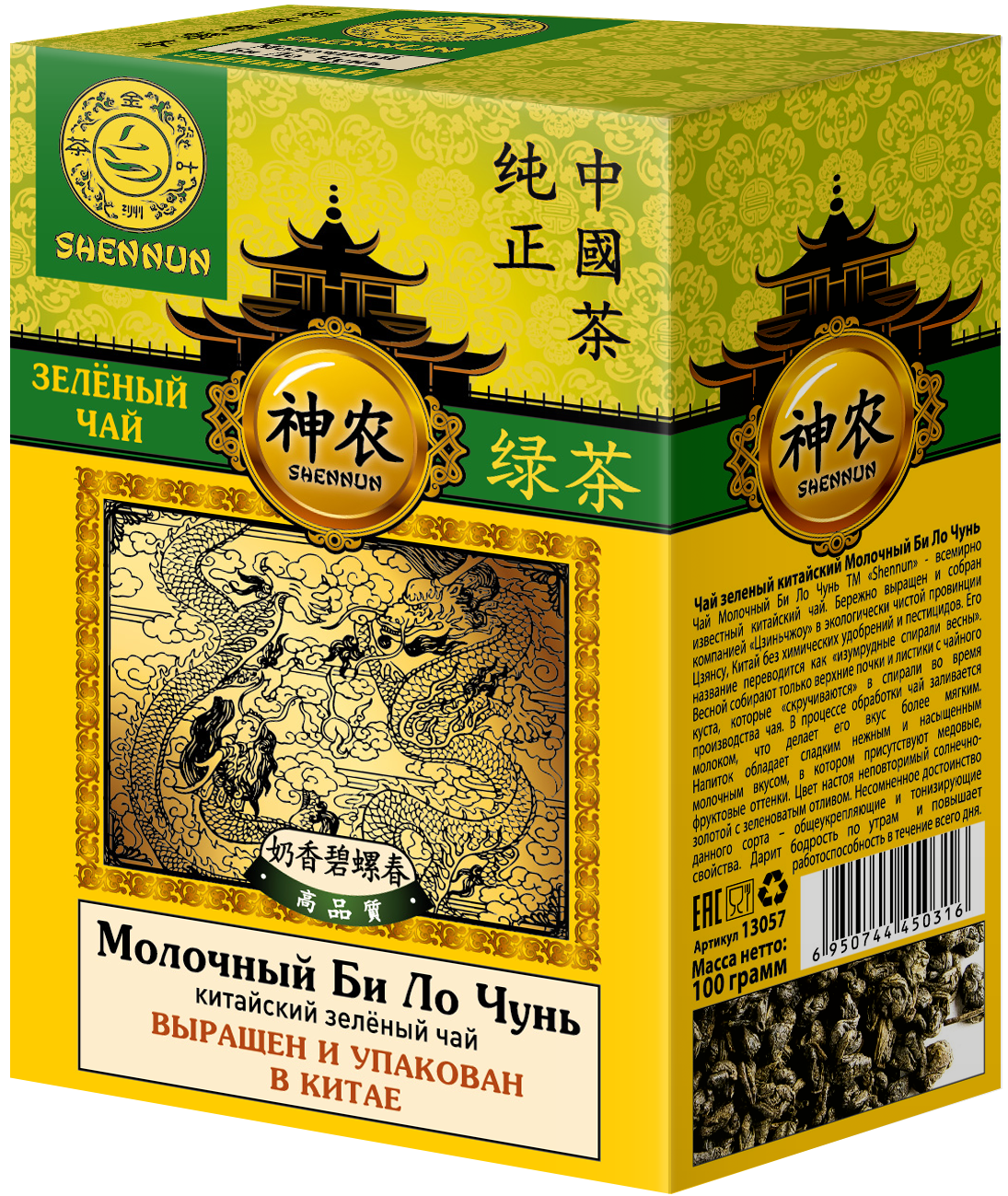 ЧАЙ ШЕННУН ЗЕЛЁНЫЙ КРУПНОЛИСТОВОЙ МОЛОЧНЫЙ БИ ЛО ЧУНЬ 100ГР