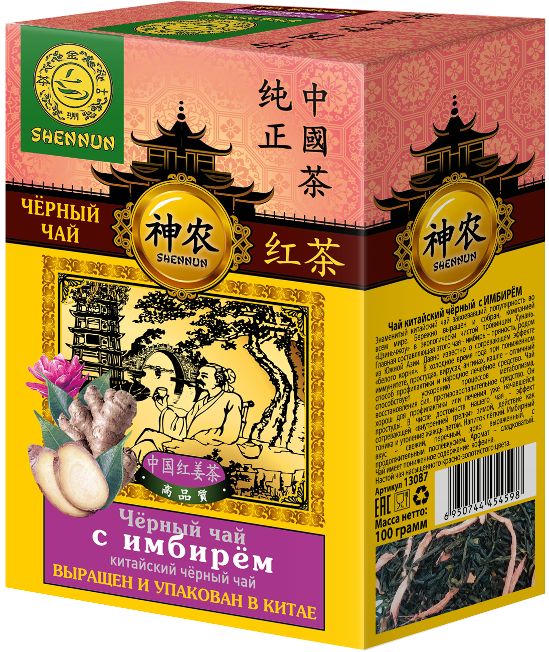 ЧАЙ ШЕННУН ЧЕРНЫЙ КРУПНОЛИСТОВОЙ С ИМБИРЕМ 100ГР