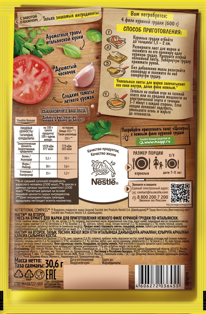 МАГГИ СМЕСЬ НА ВТОРОЕ ДЛЯ НЕЖНОЙ КУРИЦЫ ПО-ИТАЛЬЯНСКИ 30,6ГР