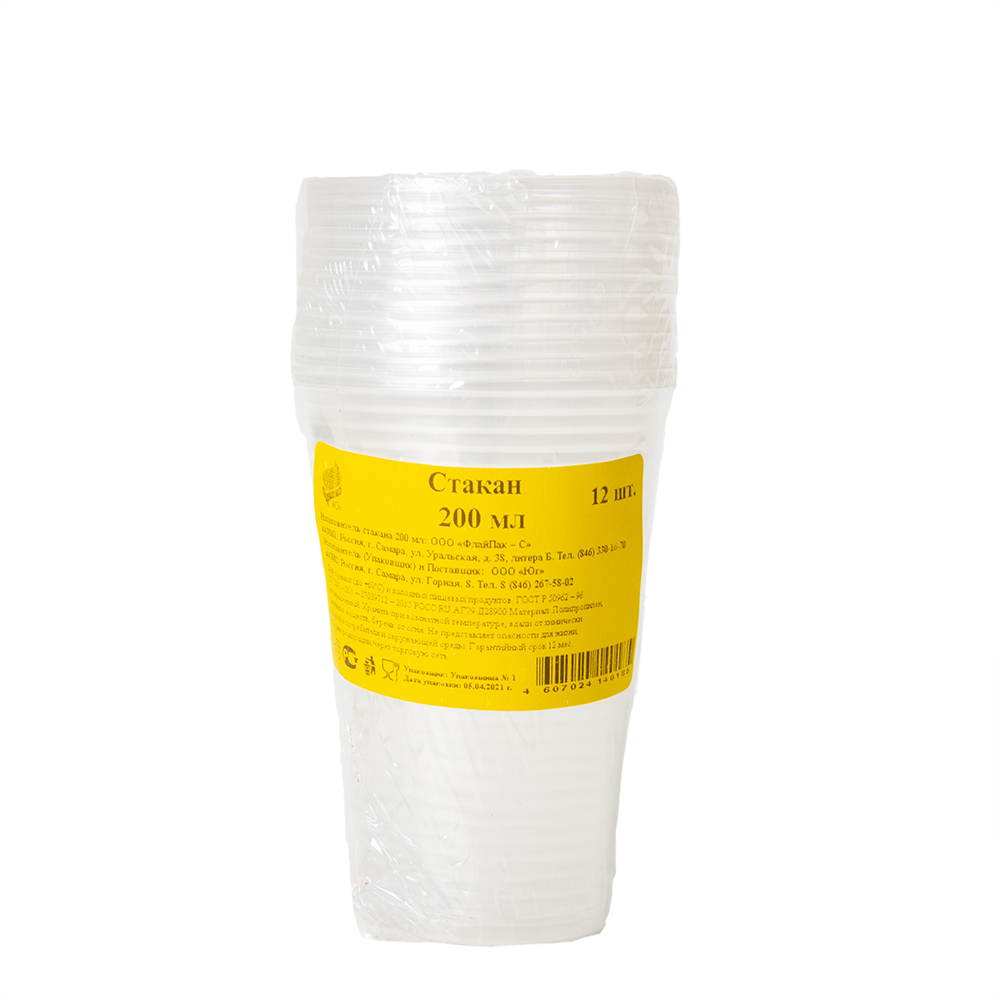 СТАКАН ПРОЗРАЧНЫЙ 200МЛ 12ШТ