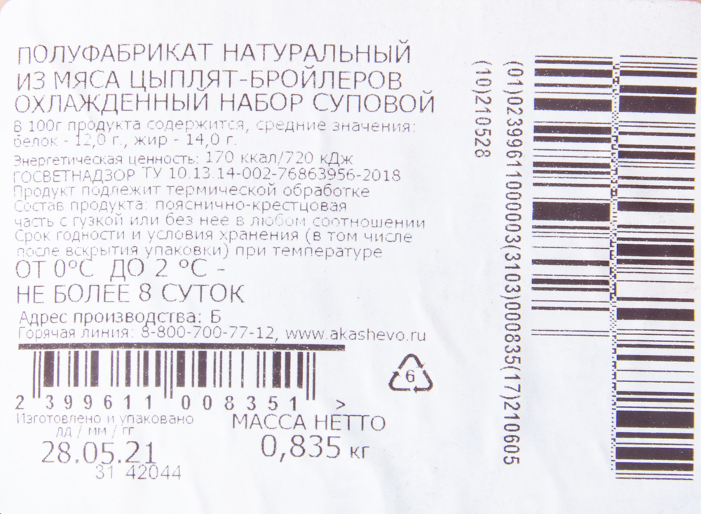 СУПОВОЙ НАБОР ЦБ ОХЛ ПОДЛОЖКА АКАШЕВО