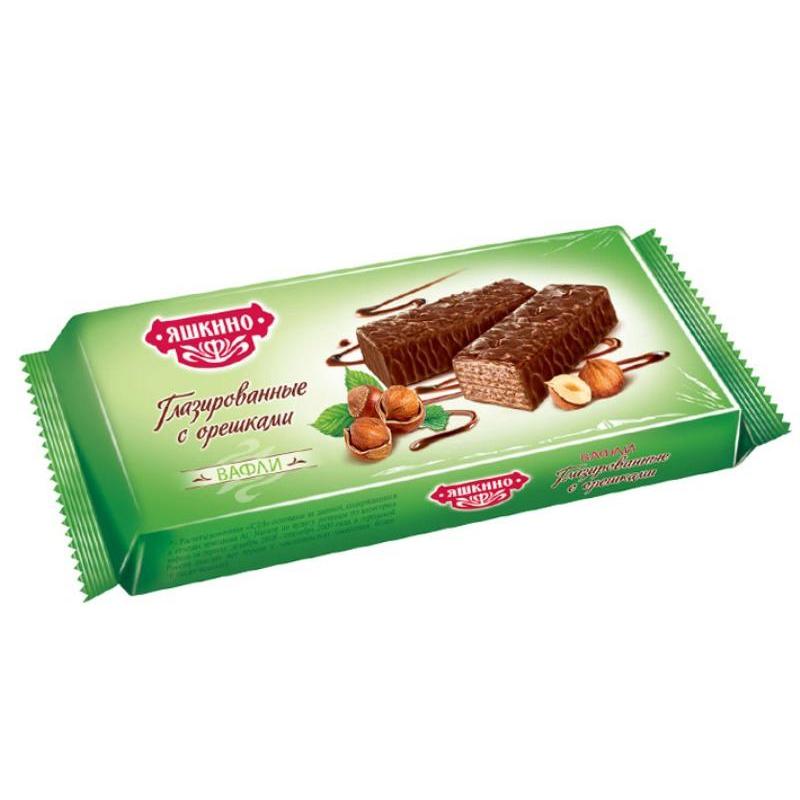 ВАФЛИ ГЛАЗИРОВАННЫЕ С ОРЕШКАМИ ЯШКИНО 200ГР