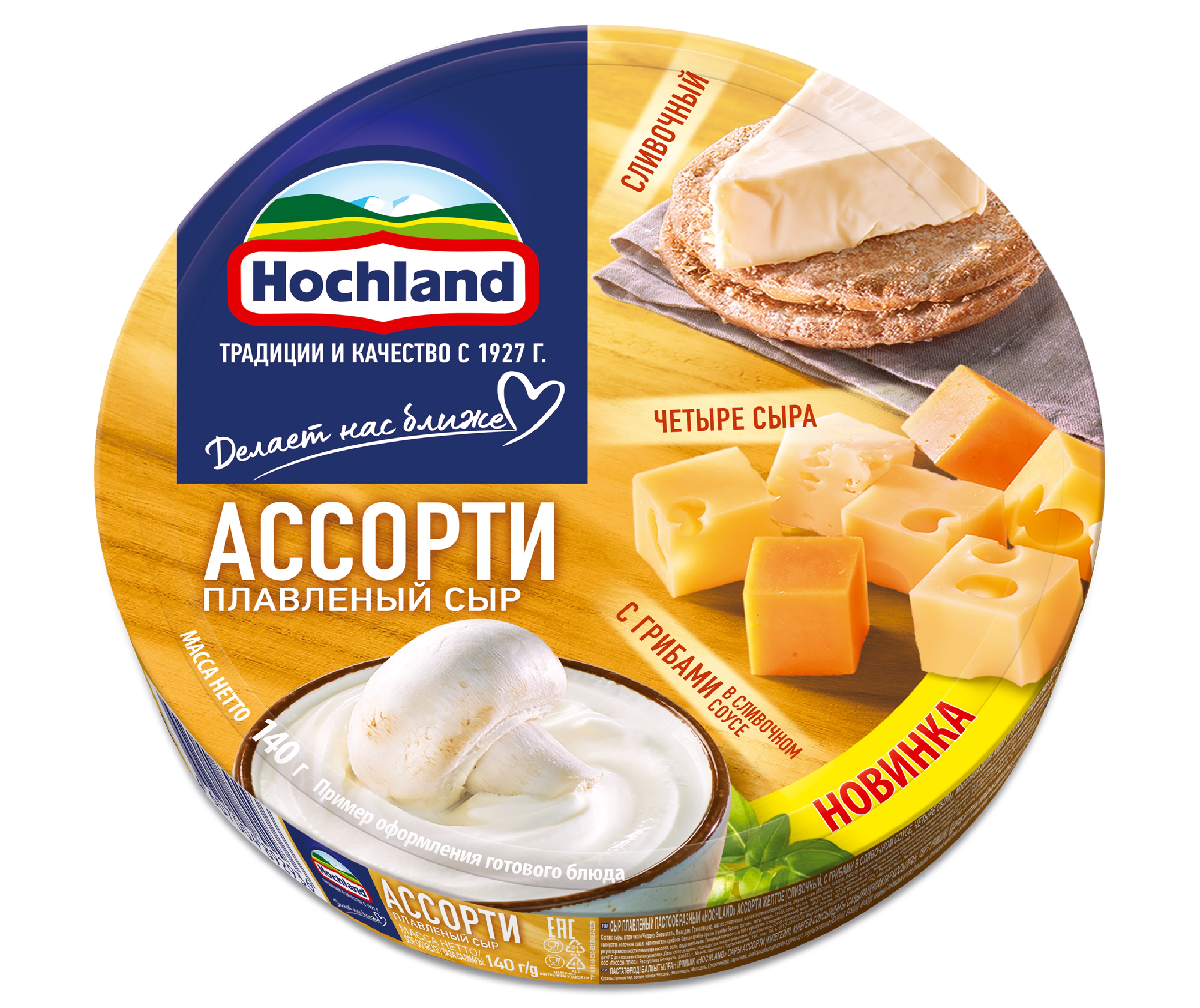 Новое желтое ассорти плавленого сыра Hochland сочетает в себе три ярких, но в то же время классических вкуса.