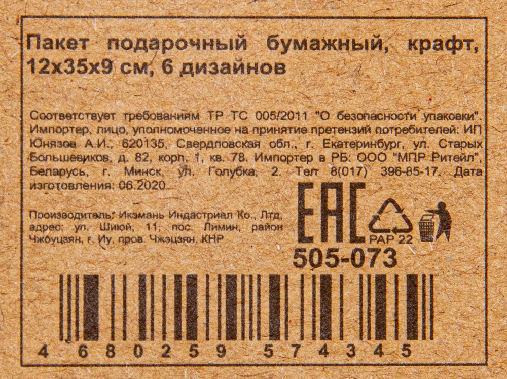 ПАКЕТ ПОДАРОЧНЫЙ 12/35/9 СМ КРАФТ
