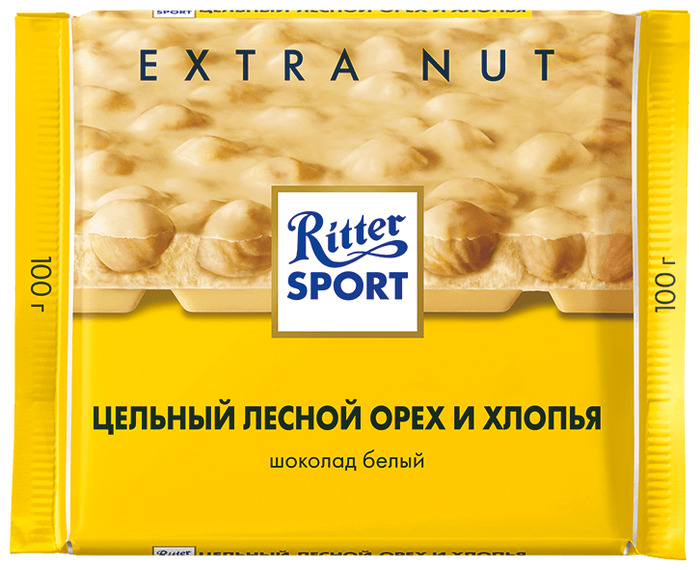 ШОКОЛАД РИТТЕР СПОРТ БЕЛ ШОК ЛЕСНОЙ ОРЕХ И ХЛОПЬЯ 100ГР
