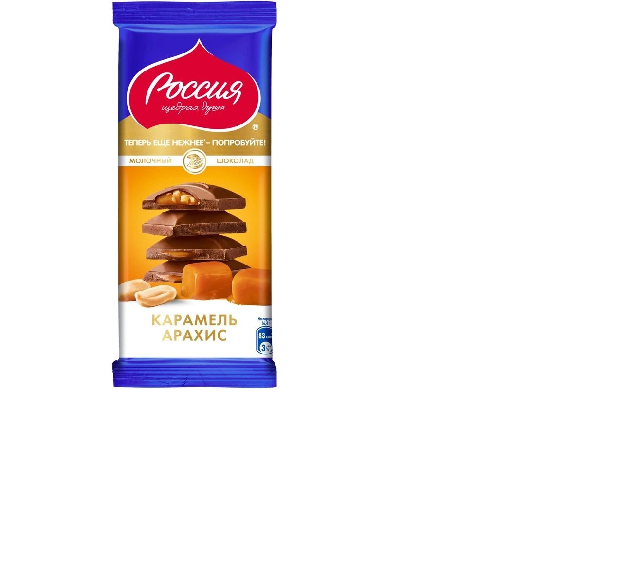 ШОКОЛАД РОССИЯ МОЛОЧНЫЙ КАРАМЕЛЬ АРАХИС 75ГР