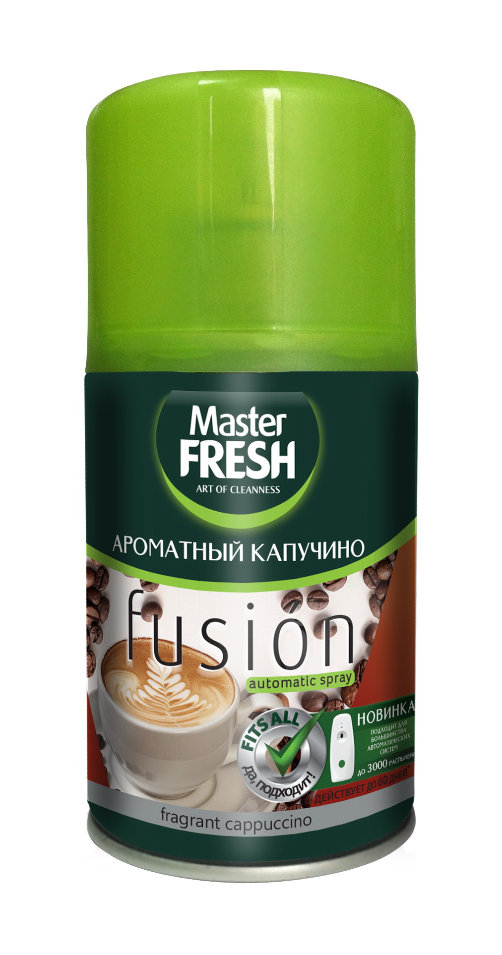 Сменный баллон освежителя воздуха Master FRESH подходит для большинства автоматических систем. Предназначен для постоянной ароматизации воздуха в любом помещении. Действует до 60 дней. Позволит создать гармонию и уют в вашем доме и надолго сохранит ощущение свежести и чистоты. Обновленная коллекция в стиле Fusion наполнит помещение легким и нежным ароматом кофе.