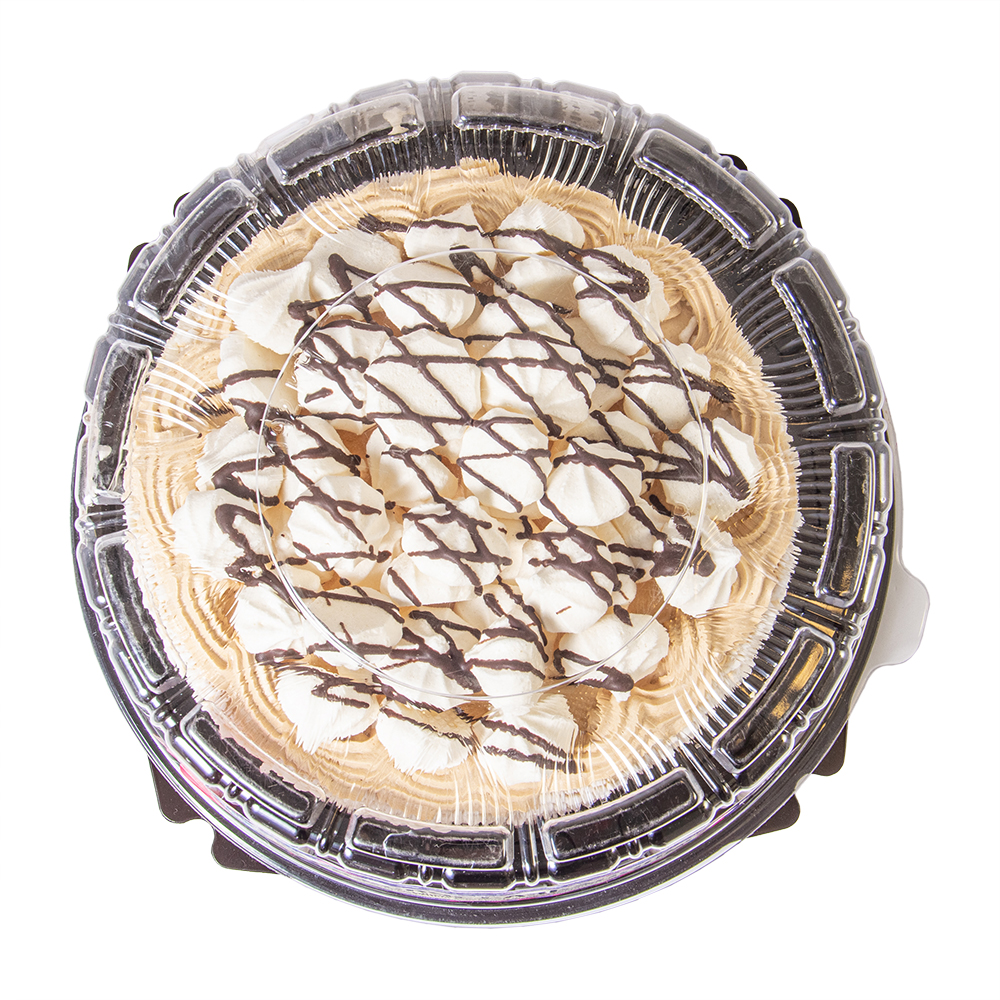 Белый бисквит и мягкое воздушное безе прослоены сливочным кремом со сгущеным молоком, с добавлением грецкого ореха и чернослива. Украшен безе и шоколадной глазурью. Обсыпан сахарной маренгой.