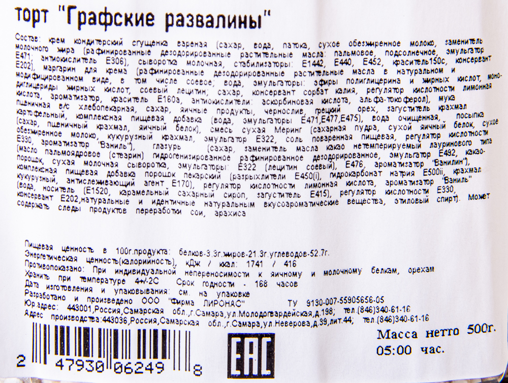 ТОРТ ГРАФСКИЕ РАЗВАЛИНЫ ЛИРОНАС 500 ГР