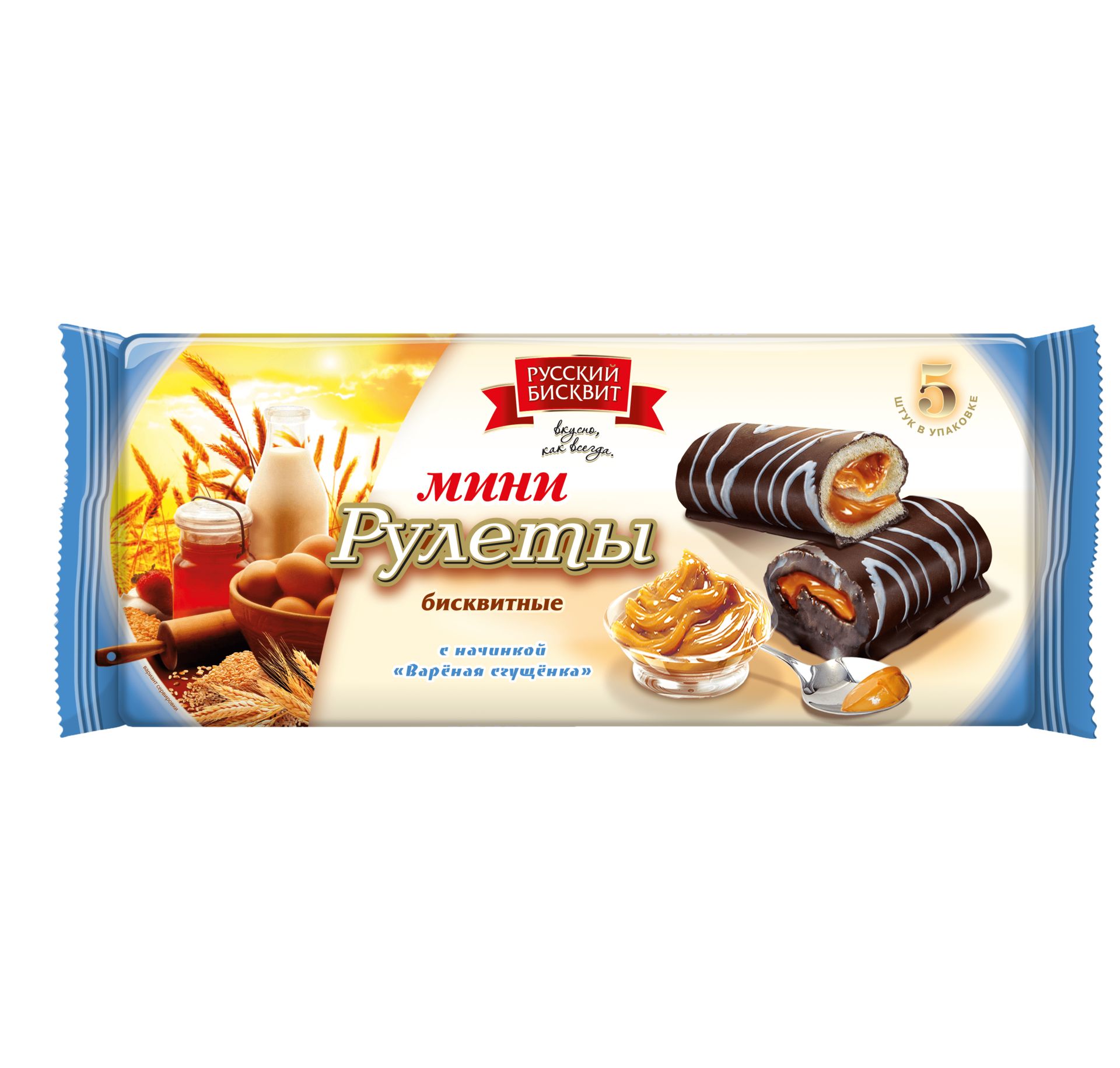 МИНИ-РУЛЕТЫ БИСКВИТНЫЕ С ВАРЕНОЙ СГУЩЕНКОЙ ТМ РУССКИЙ БИСКВИТ 175Г