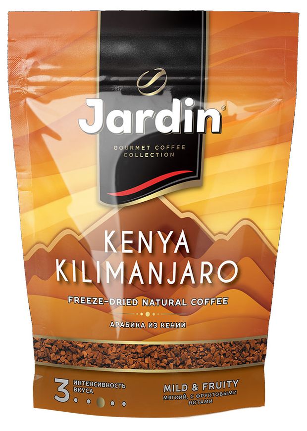 Самый мягкий вкус в линейке растворимого сублимированного кофе Jardin. Кенийская арабика придает кофе фруктовые оттенки и тонкий цитрусовый аромат. Идеально раскрывается при добавлении молока.